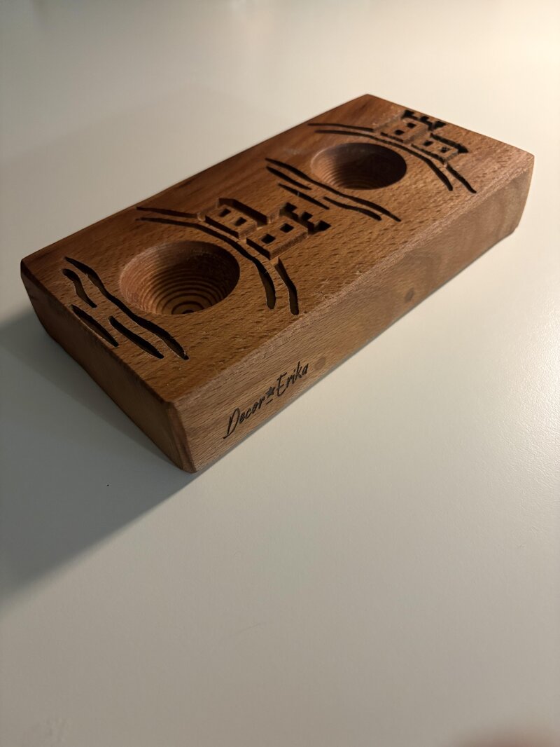 Base in legno per il decoro dei ravioli. Realizzata con due decori uguali e due scanalature per facilitare la realizzazione di due ravioli in un’unica stesura di pasta. Dimensione 22x15 cm. Scanalatura per ripieno decorata con diametro 4,5 cm, profondità 2,5 cm, I disegni rappresentano un logo che è stato rielaborato appositamente per questo tipo di progetto. Realizzabile con i vostri disegni su richiesta che dovranno essere forniti quando verrà effettuato l’ordine. Nel prezzo è compresa la rielaborazione grafica del vostro disegno/logo