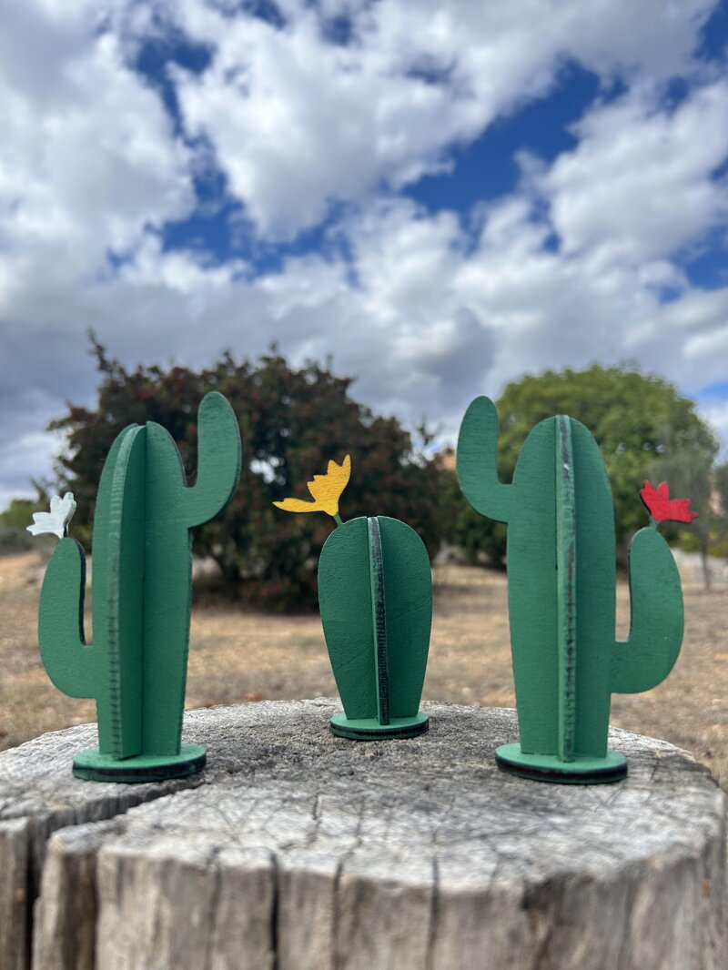 Cactus o Fico d’india ornamentale in legno. Piccolo elemento decorativo di design per la casa, ufficio, attività commerciale. Idea bomboniera