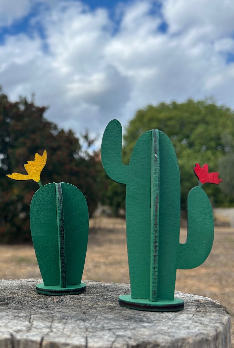 Cactus o Fico d’india ornamentale in legno. Piccolo elemento decorativo di design per la casa, ufficio, attività commerciale. Idea bomboniera