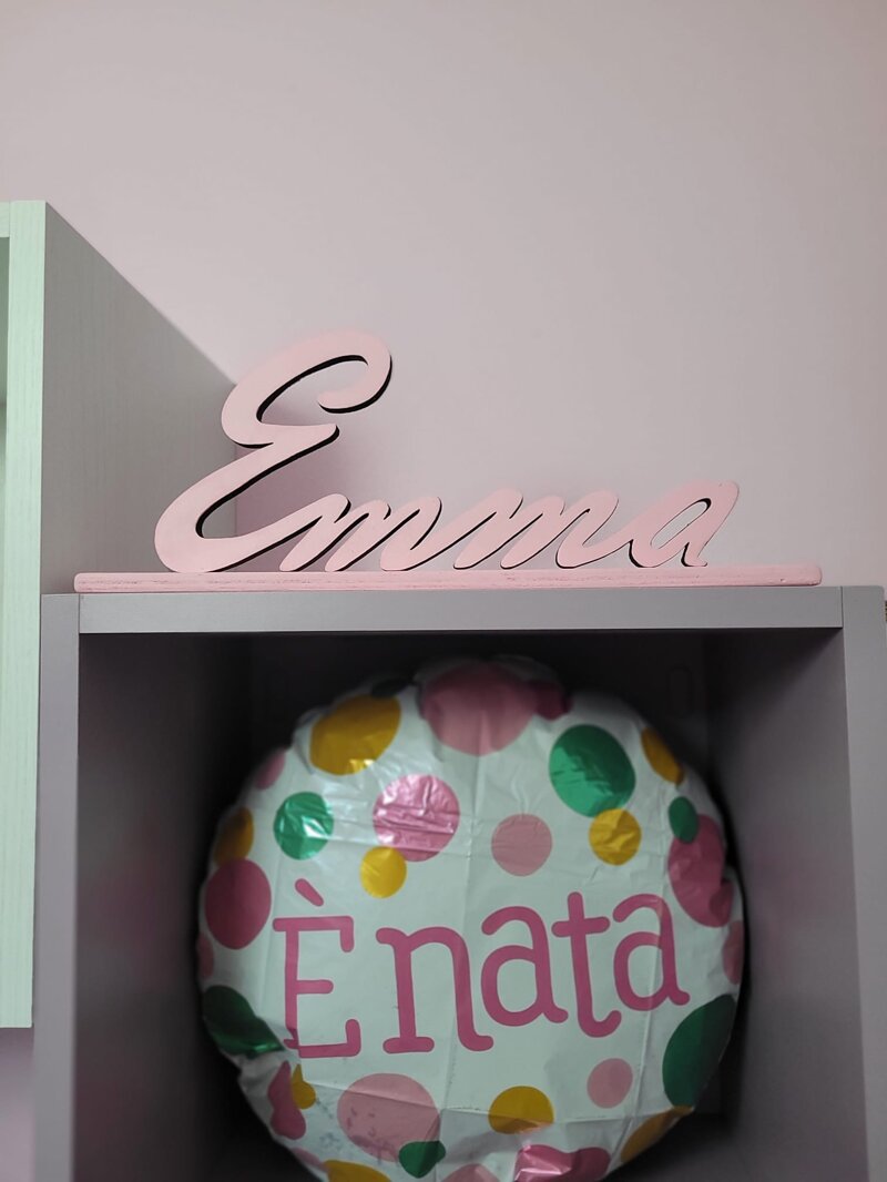 Nome 3D realizzato in legno con base per appoggio. Verniciato del colore prescelto. Spessore 1 cm. Ideale per occasioni speciali, cerimonie e come ornamento. Realizzabile con nome e colore desiderati da comunicare al momento in cui viene effettuato l’ordine