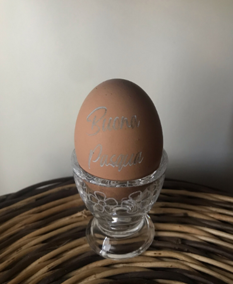 Porta uovo in vetro con decoro inciso a 360 gradi. Realizzabile anche su altri materiali.