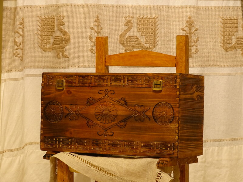 Riproduzione cassapanca di legno in stile sardo in scala
