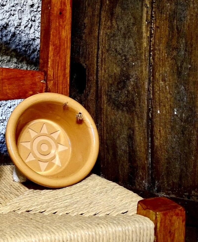 Scivedda Sarda diametro 35 cm decorata con pintadera incisa sul fondo