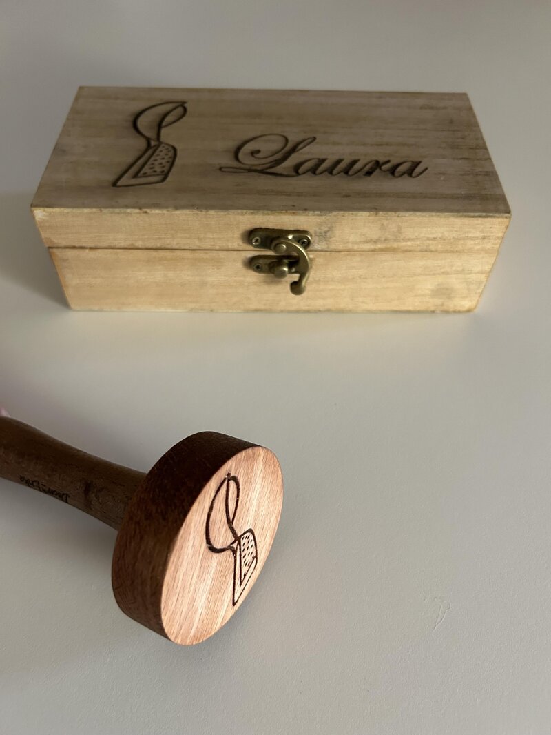 Set con scatola per riporre il timbro in legno “Donnina Sarda” per il decoro di pasta, pane e dolci. Un disegno unico nel suo genere che ricorda la donna sarda nel suo tipico costume tradizionale, ma non solo. La silhouette richiama alla mente l’immagine di ogni donna con il grembiule, che in cucina si cimenta a preparare delle prelibatezze. Il timbro ha un diametro di 6 cm, con un pratico manico che si può smontare per un accurato lavaggio. La scatola verrà personalizzata con l’incisione della “Donnina” e con un nome a scelta che dovrà essere comunicato al momento dell’ordine