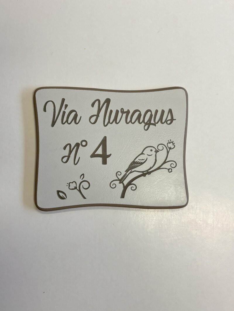 Targa fuori porta ceramica 13x18 cm forma sagomata con incisione uccellino. Personalizzabili con i tuoi dati, nome, via e numero civico da comunicare quando viene effettuato l’ordine. Le incisioni sono indelebili e durature nel tempo, anche alle intemperie all’esterno