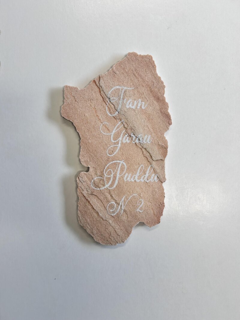 Targa fuori porta a forma di Sardegna in pietra Quarzite rosa 25x20 cm. Sagomata e incisa indelebilmente con scritte su richiesta. Per la vostra personalizzazione contattateci e verrà realizzata una bozza grafica, per l’approvazione, prima della realizzazione del lavoro