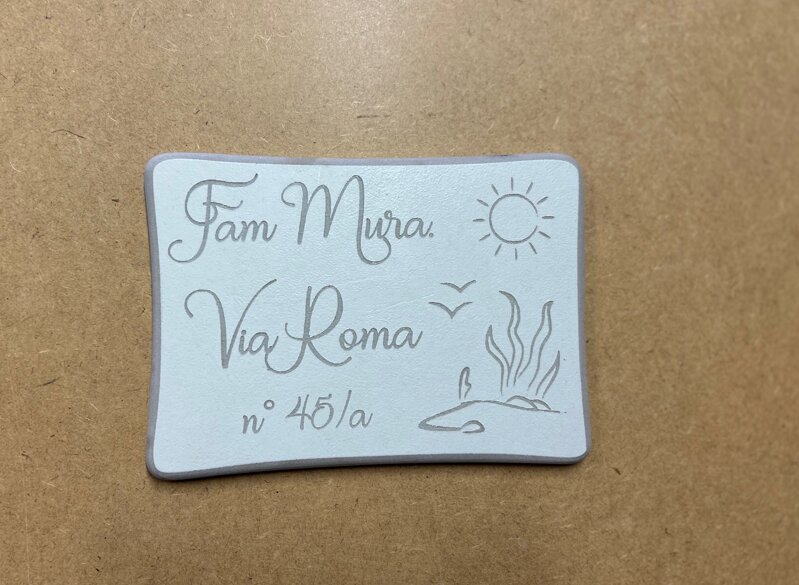 Targa fuoriporta personalizzabile con nomi, via, numero civico e disegno sole. Dimensioni 13x18 cm. Realizzabile anche rettangolare. Una volta effettuato l’ordine basterà comunicare i dati da inserire. Vi verrà anche mandata l’anteprima del lavoro con una bozza grafica