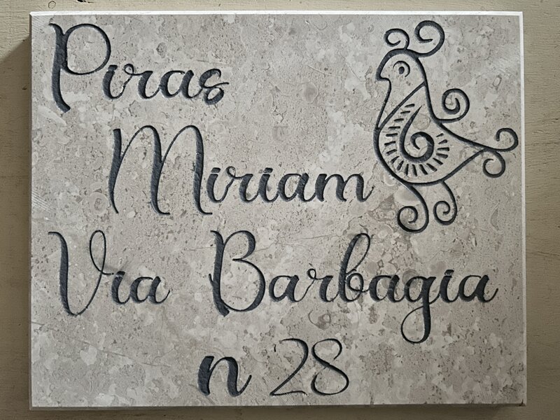 Targa fuori porta in marmo 25x20 cm, con incisione nomi, indirizzo e disegno inciso con verniciatura. Personalizzabile con scritte e disegni su richiesta. Sarà sufficiente dare comunicazione dei dati e del disegno preferito via e-mail al momento in cui si eseguirà ordine